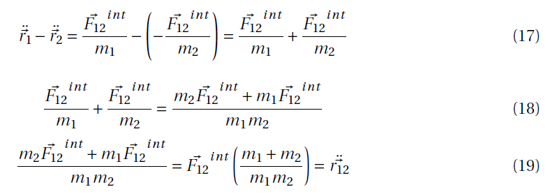 unicamente entre ellas o un sistema aislado, vamos a tener que el movimiento relativo de las dos partículas es equivalente al movimiento relativo de una partícula de masa μ (masa reducida, respecto a un sistema inercial) del sistema que esta sometida a una fuerza igual a la de interacción. Este resultado es muy importante en Física ya que es lo que se usa para estudiar el movimiento planetario.